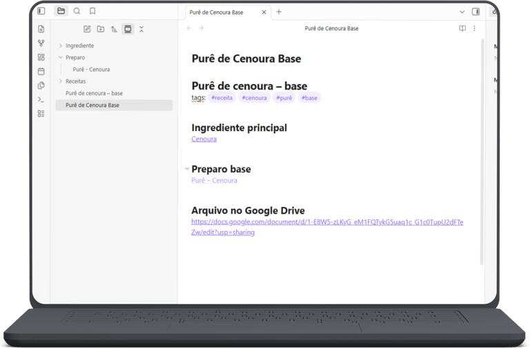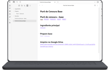 Organize receitas, testes, artigos em um único sistema conectado, com recuperação rápida da informação.